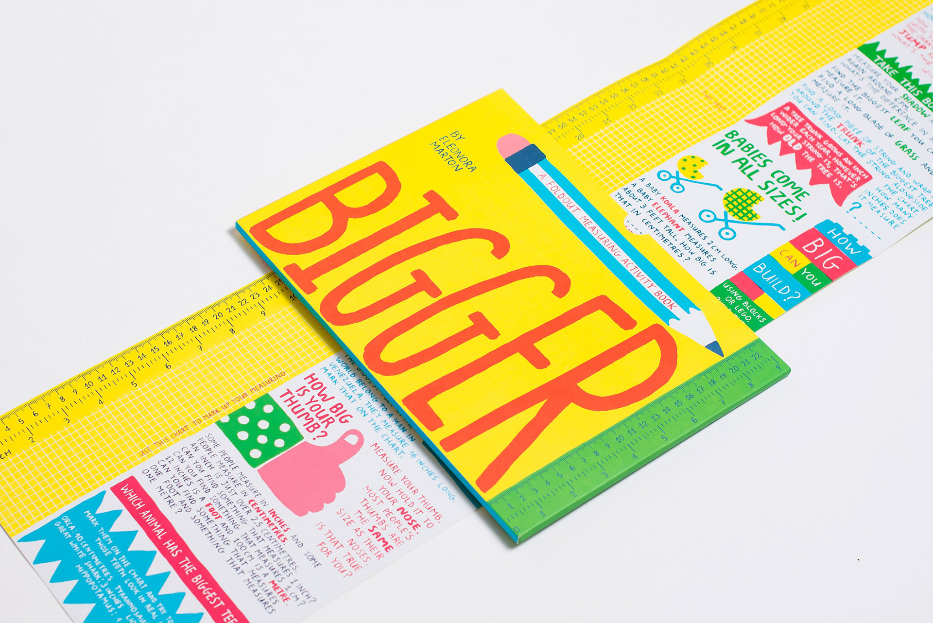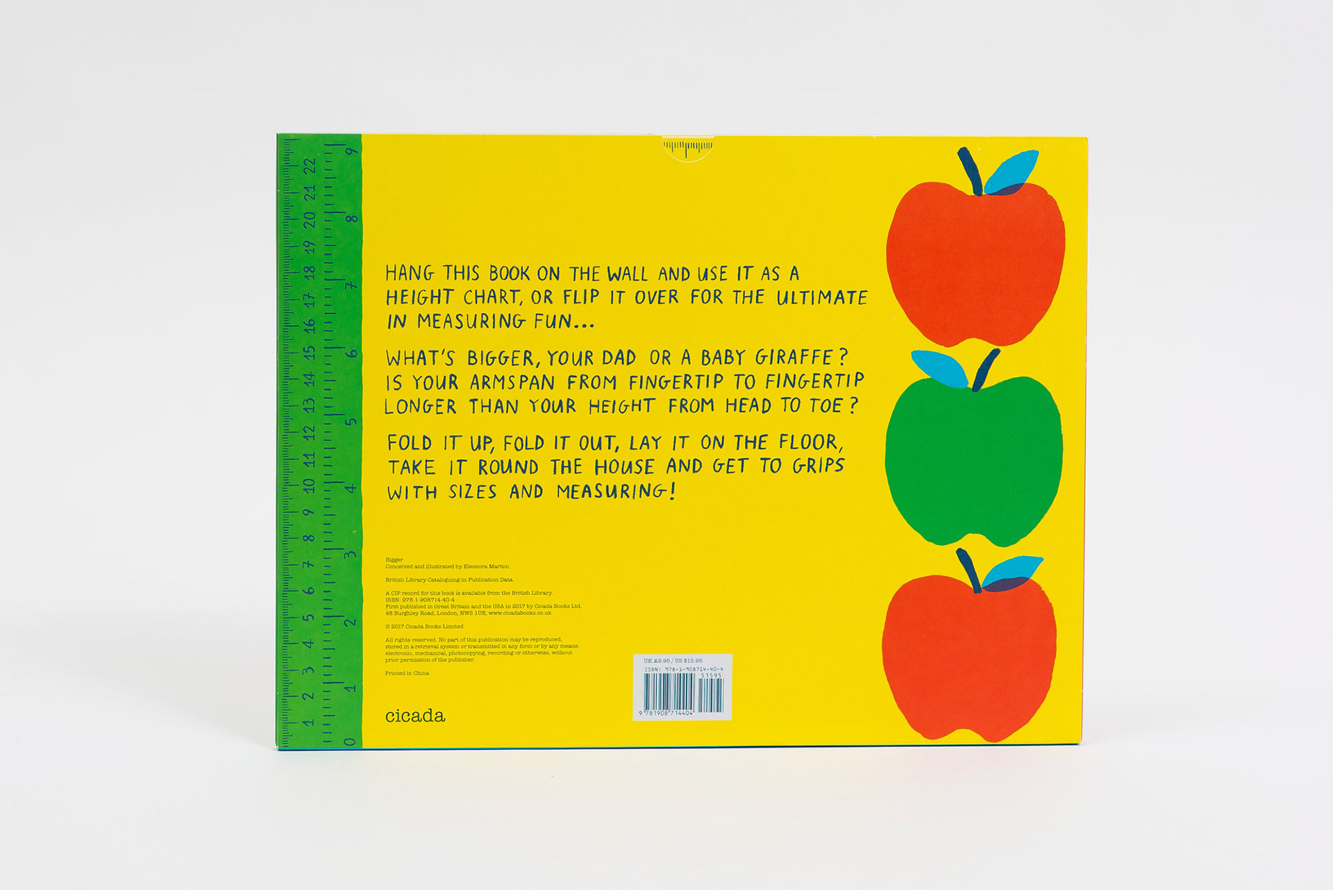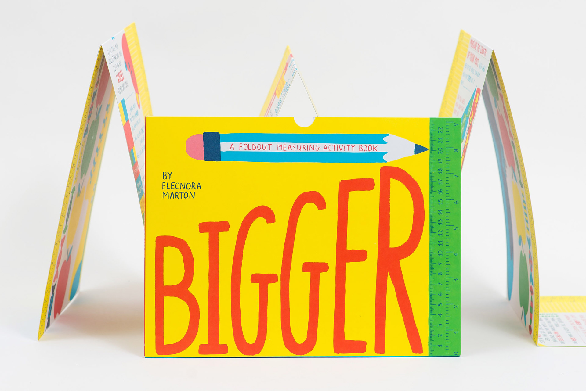 Published in UK by Cicada Books, 2017 Other editions: Korean, Spanish, Chinese A leporello book that serves as a height chart and a measuring tool to help curious kids get excited about mathematics and measuring. When folded, the book measures exactly one foot long. Leporello in slipcase, 30.5 cm x 23 cm, 14 pages