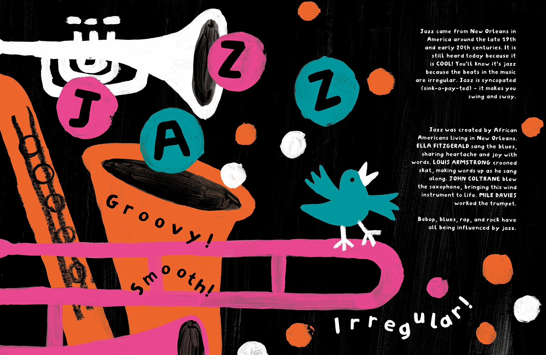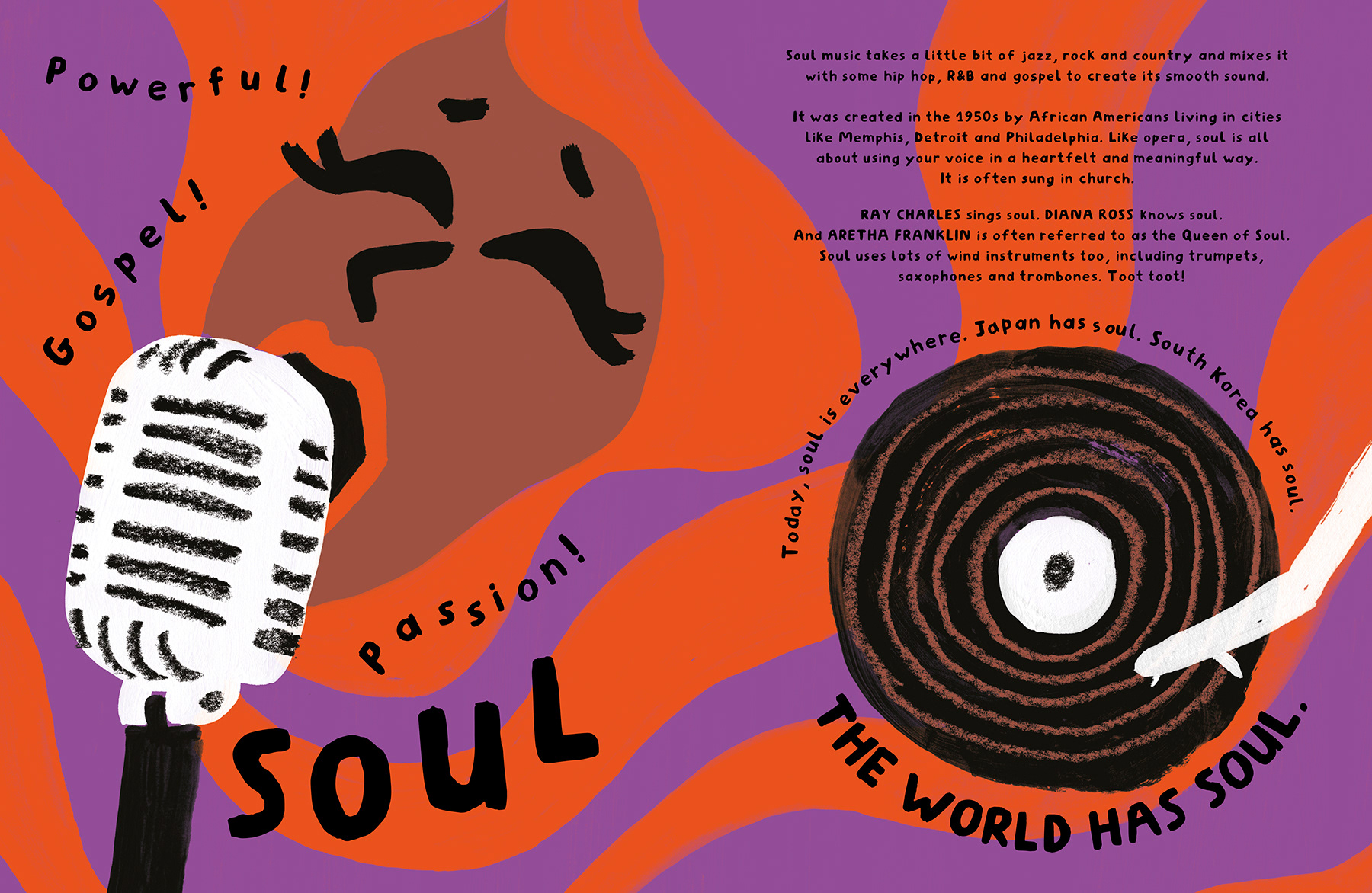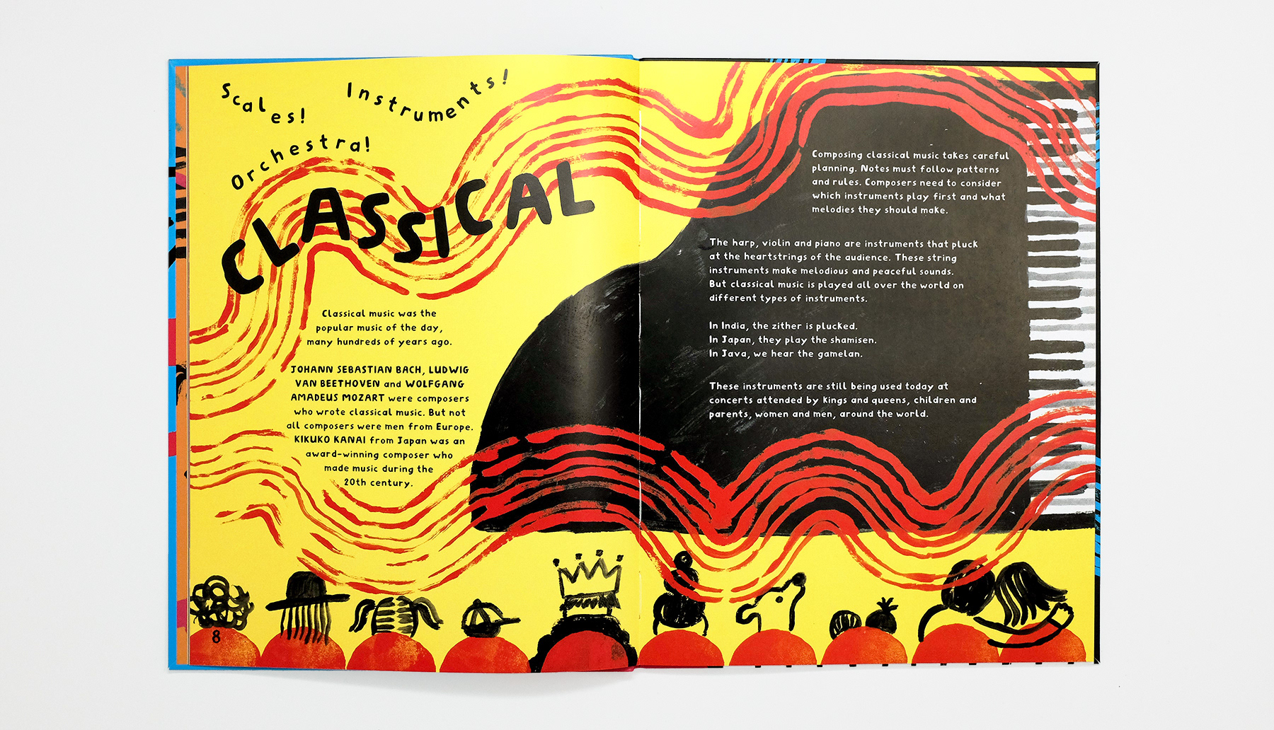 Can you make a noise like a trumpet? How do you sing the blues? This bright and busy book provides a fun first look at music and is jam-packed with things for busy little fingers to try! Featuring 10 need-to-know genres from Soul to Pop, learn all about each one before trying your hand at creating your own funky beats. Published in the UK by Big Picture Press, 2024. 48 pages, text by Eva Wong-Nava.