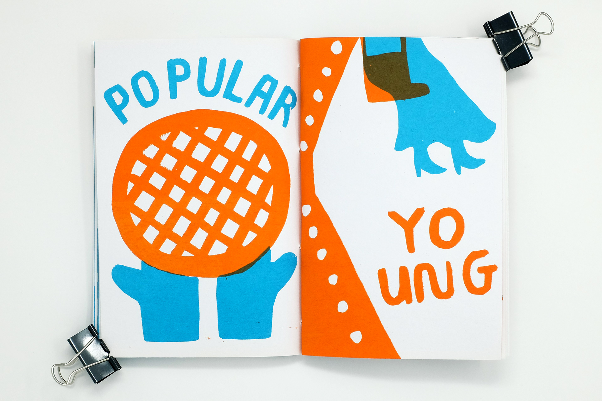 Second Edition Published by Ediciones Hungria, 2019 Screen-printed in two colours (orange and teal) 19.5cm x 13.5 cm, 40 pages First Edition Published by Exit Press, 2015 Two colour Risograph print (red and green) on recycled paper
