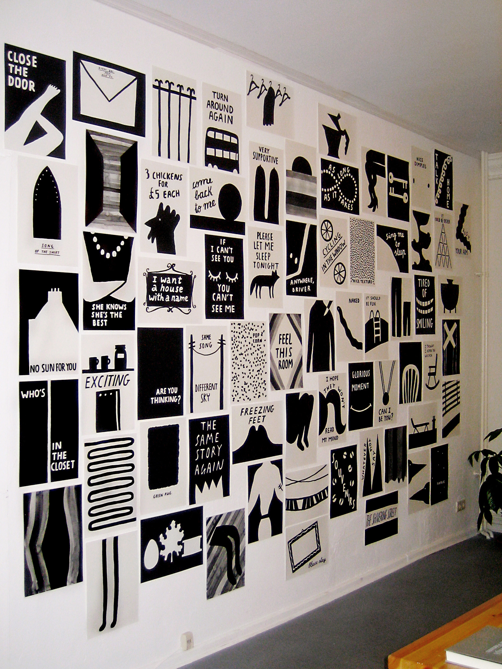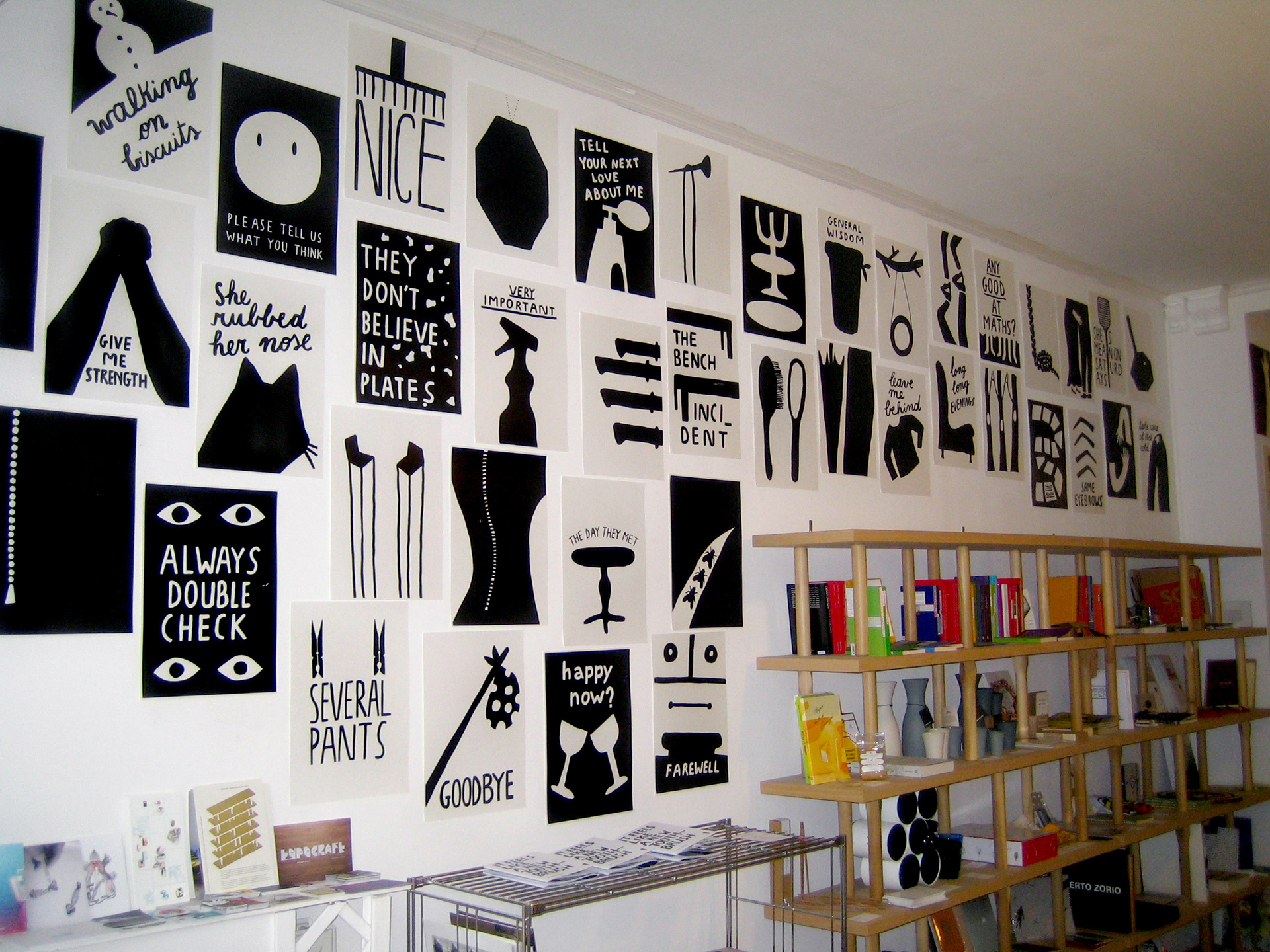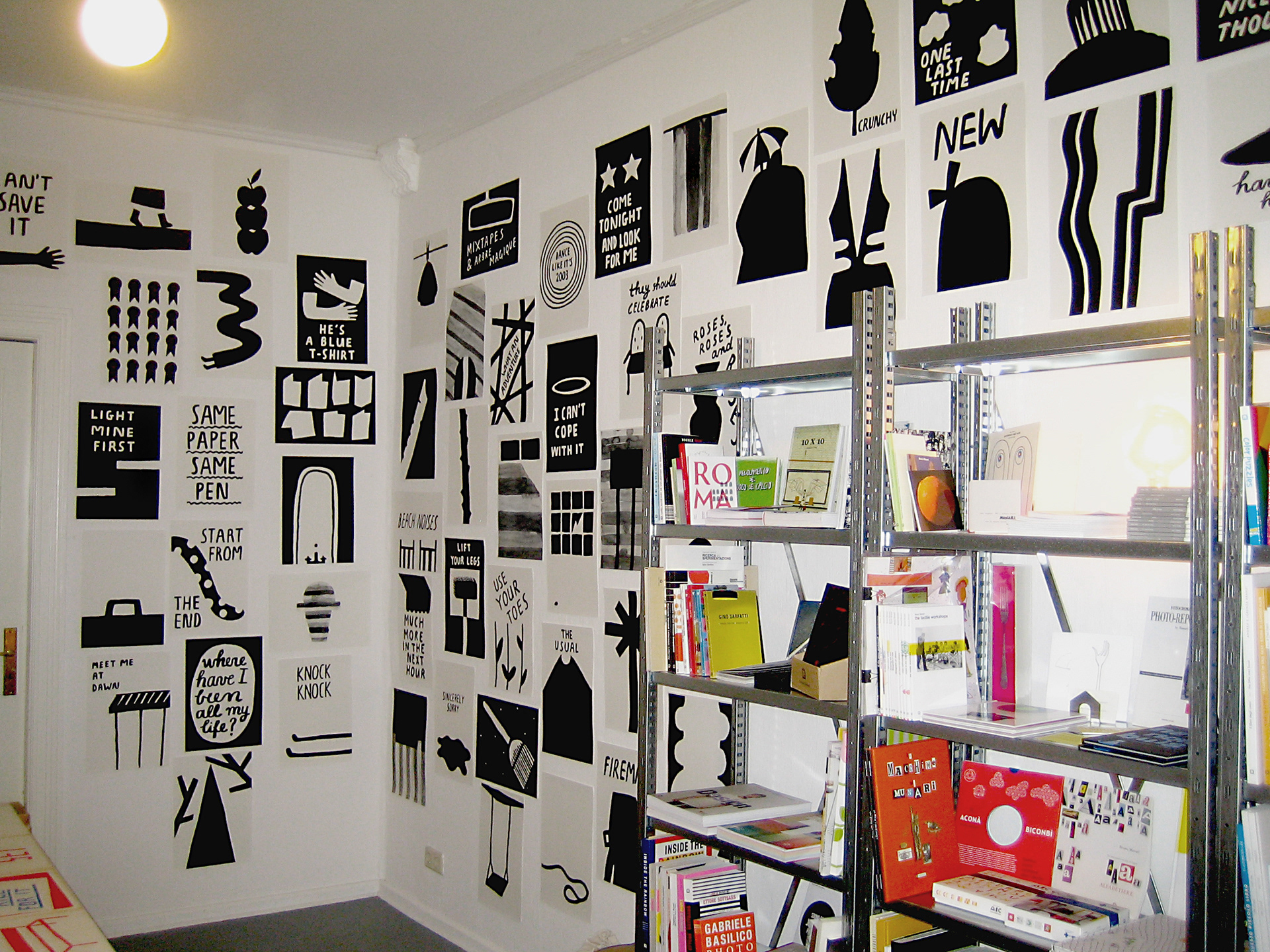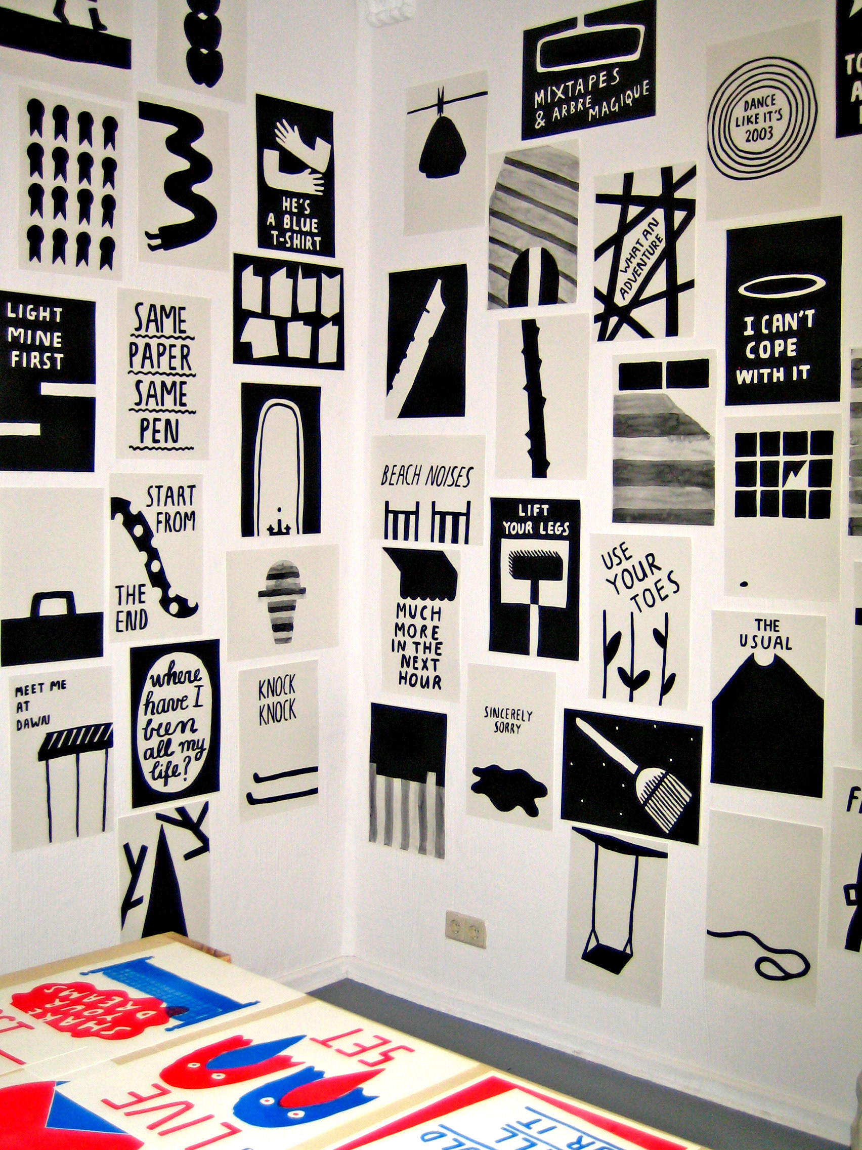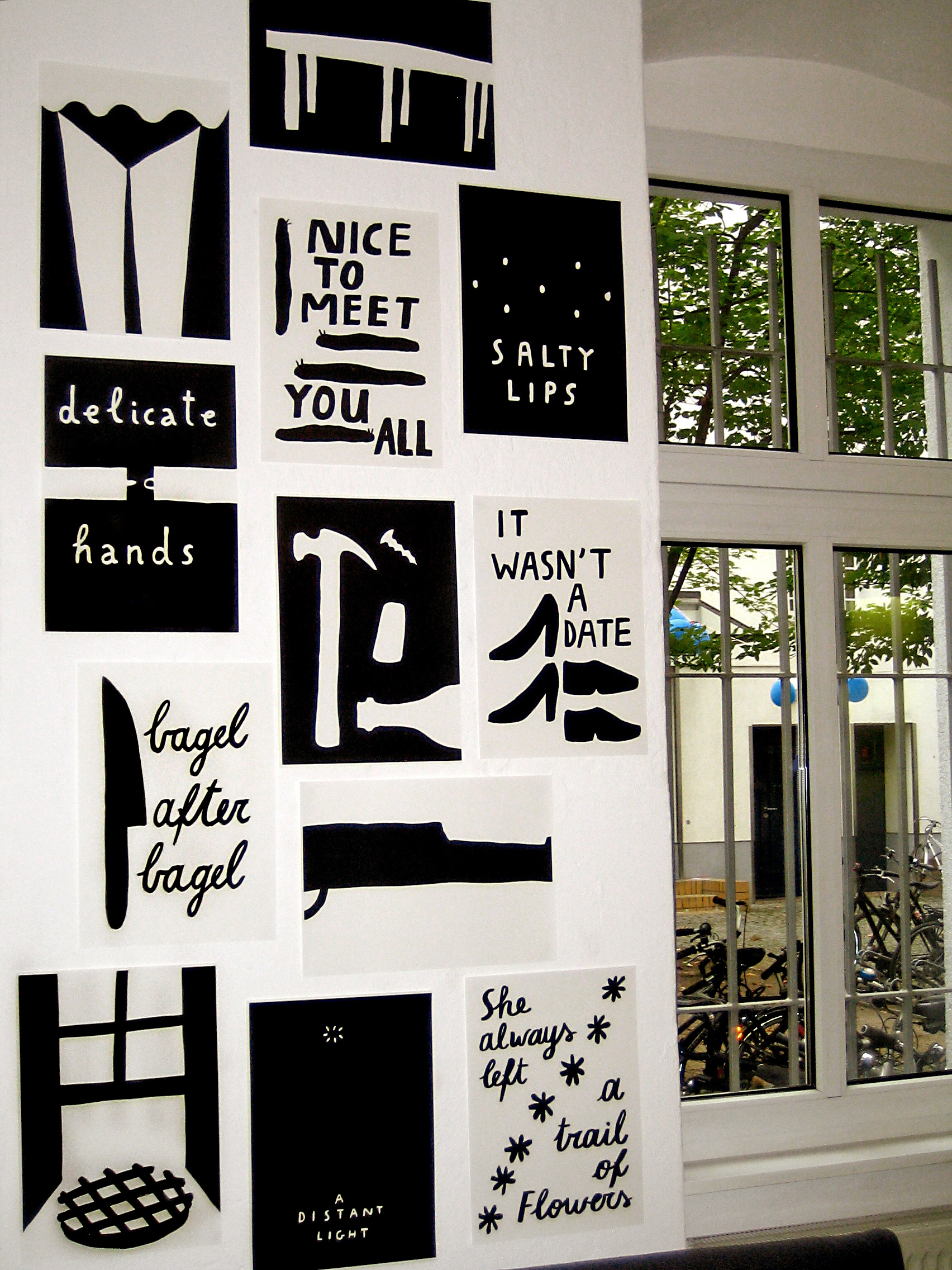Solo show, 2013 Spazio Corsivo, Berlin I covered the walls of the gallery/shop with 200 black ink drawings, a selection of 70 is also collected in a book printed by Raum Italic on the occasion of the exhibition.