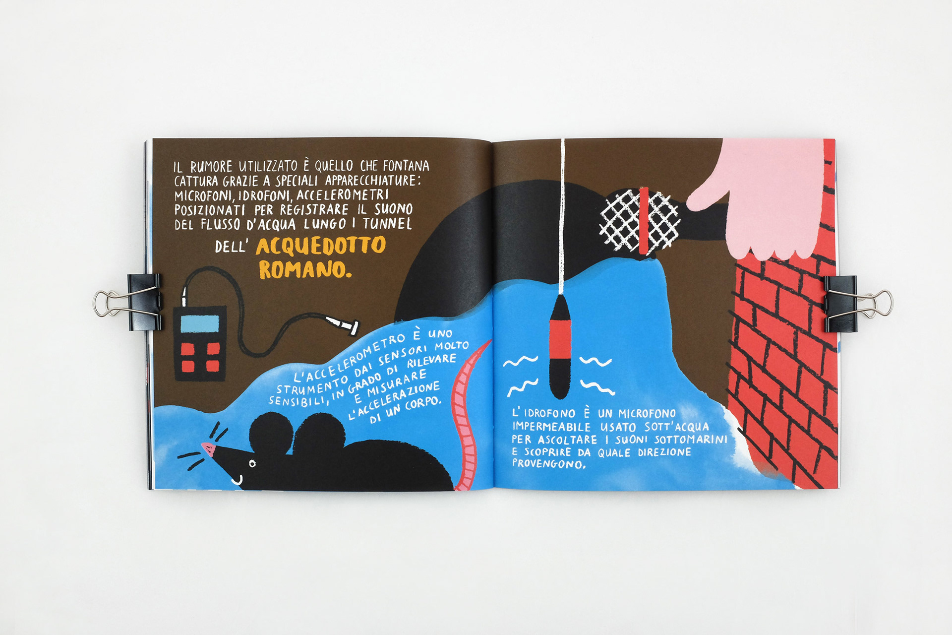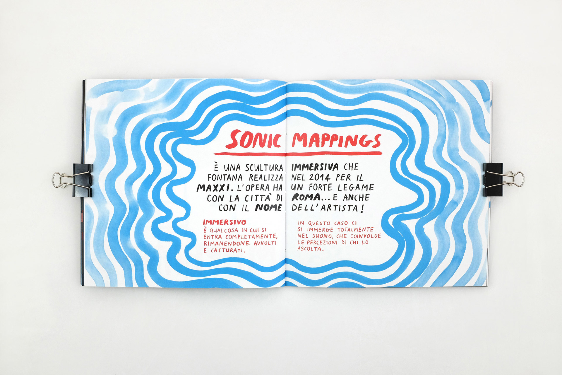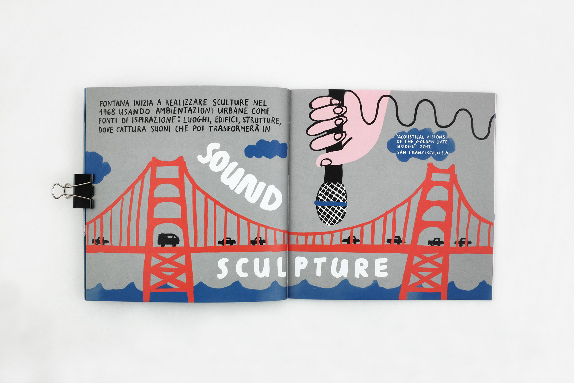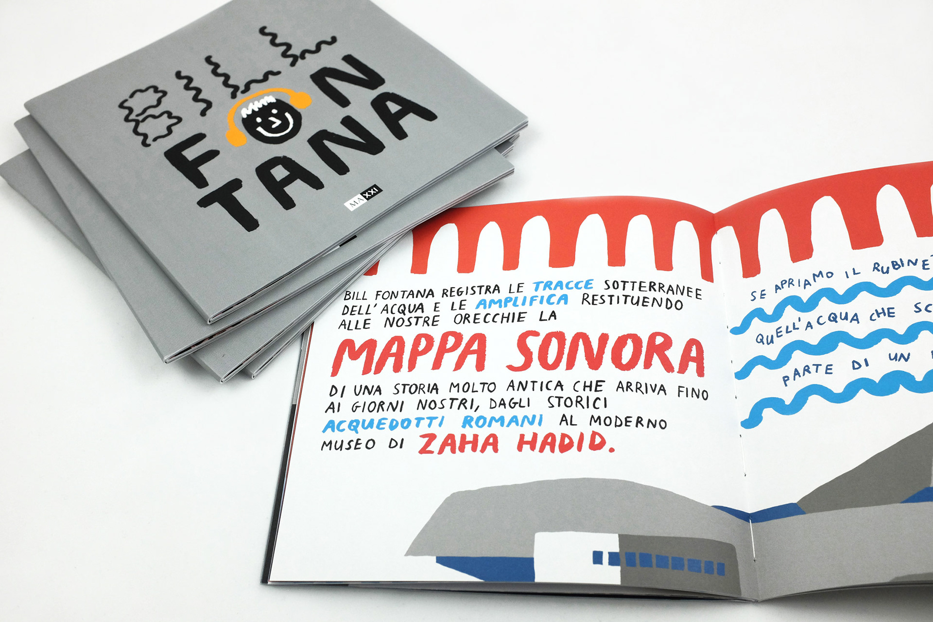BILL FONTANA Published by MAXXI in Italian and English, 2018 I designed and illustrated this picture book for the museum of contemporary art and architecture MAXXI in Rome. It's about American artist Bill Fontana and his sound sculpture 'Sonic Mappings', which is part of the permanent collection of the museum. The series Piccoli MAXXI is curated and written by Eloisa Guarracino. 20x20cm, 36 pages