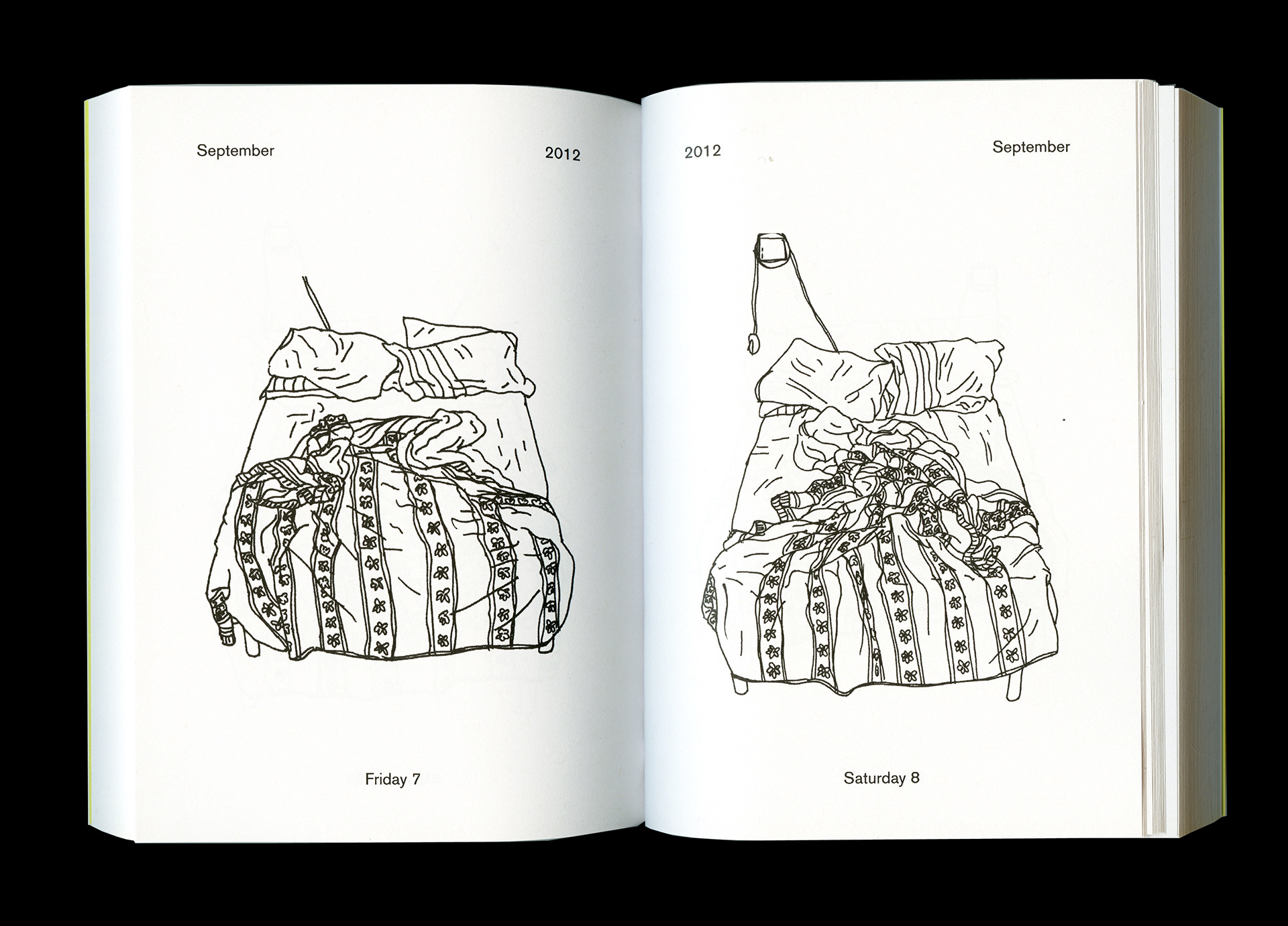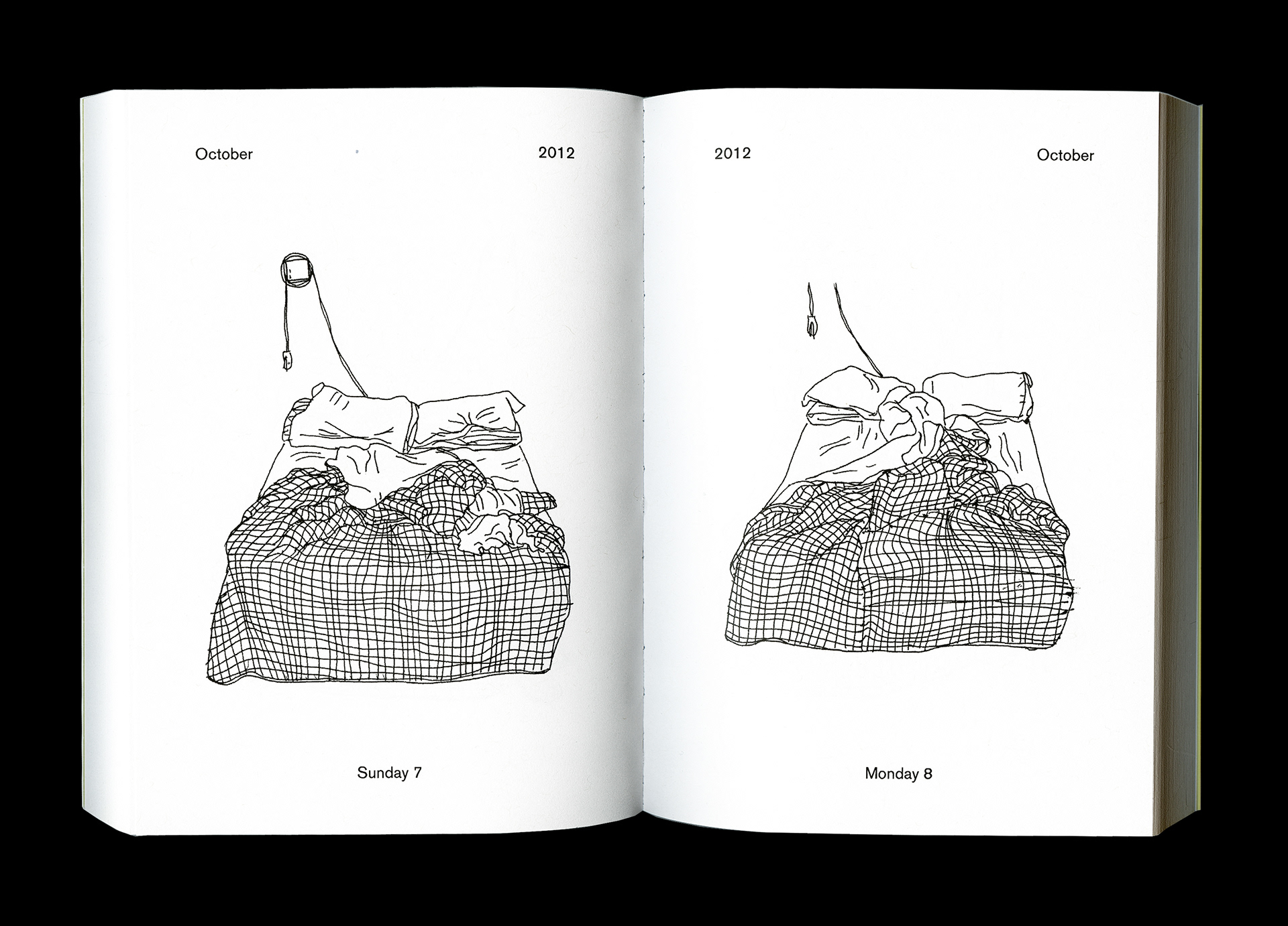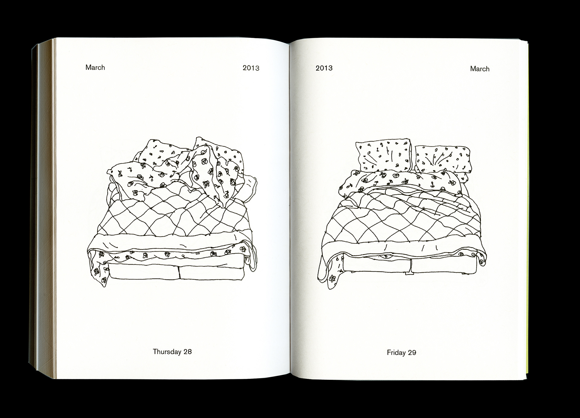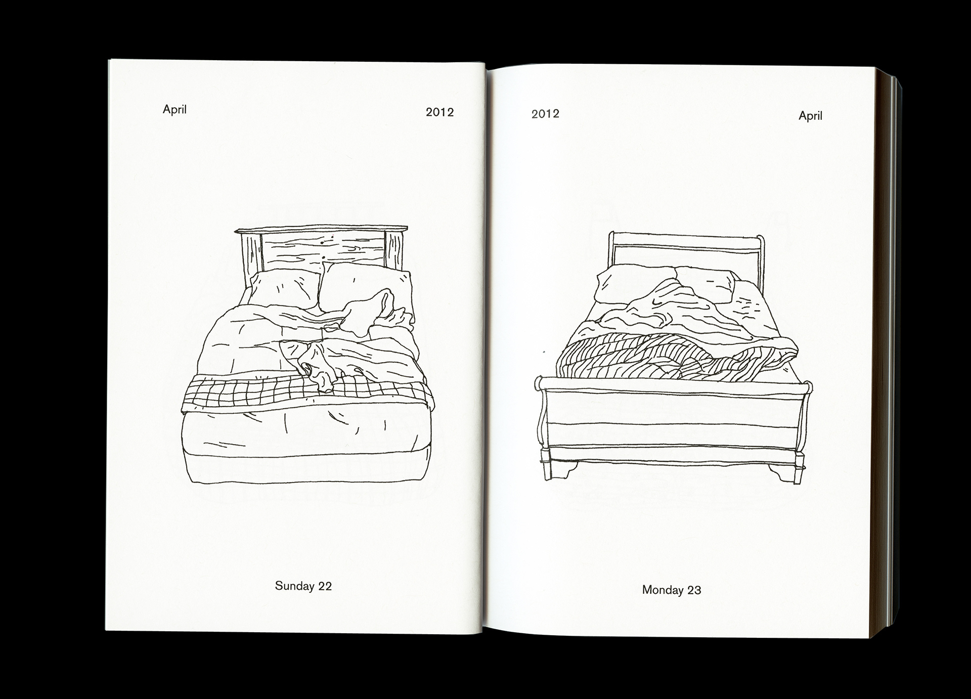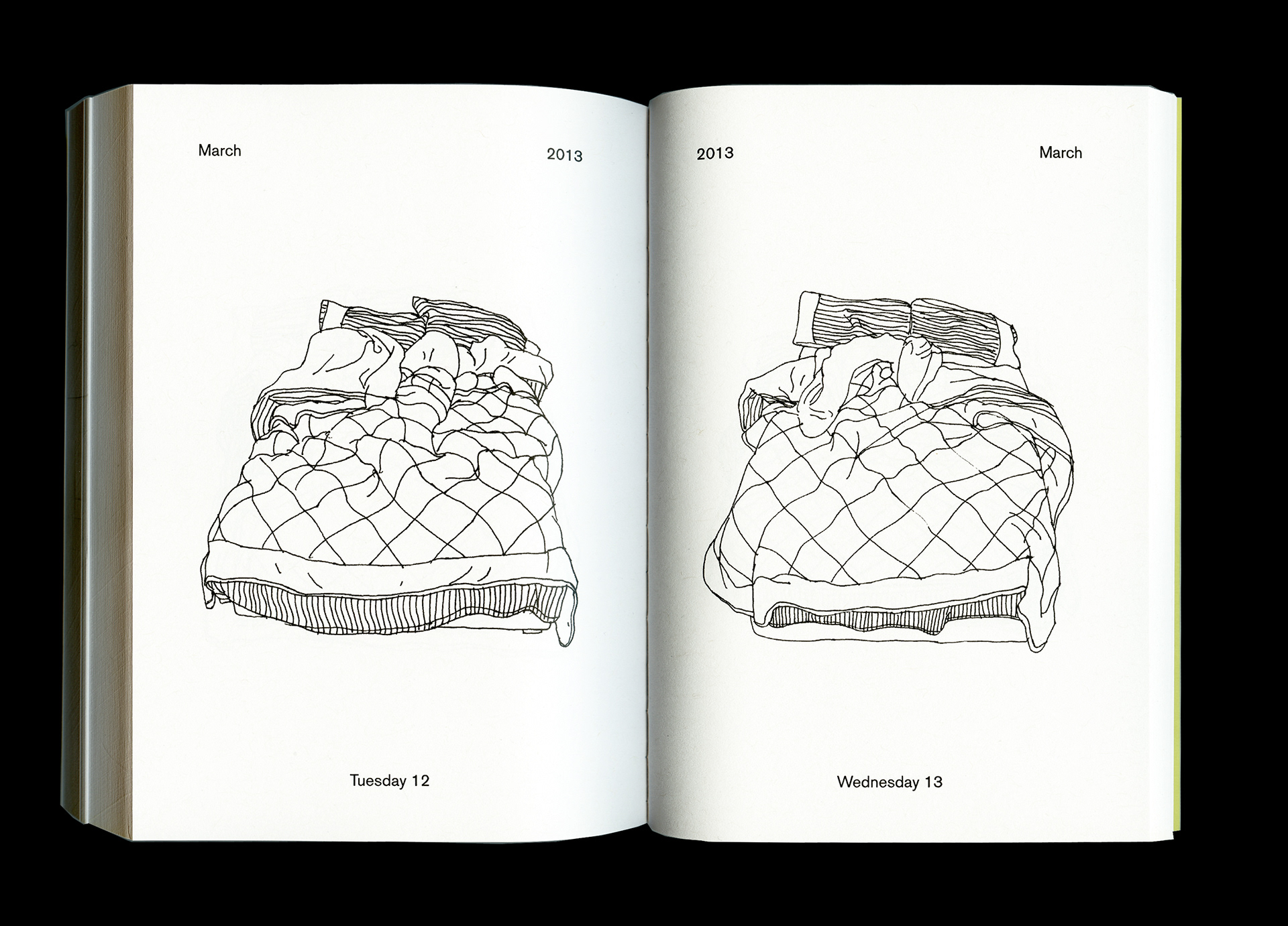 Self published, 2018 Between 2012 and 2013, I made a drawing of my bed every morning after breakfast. Previously published on a blog, all 365 drawings are now reproduced in this book. 368 pages, 105x148 mm